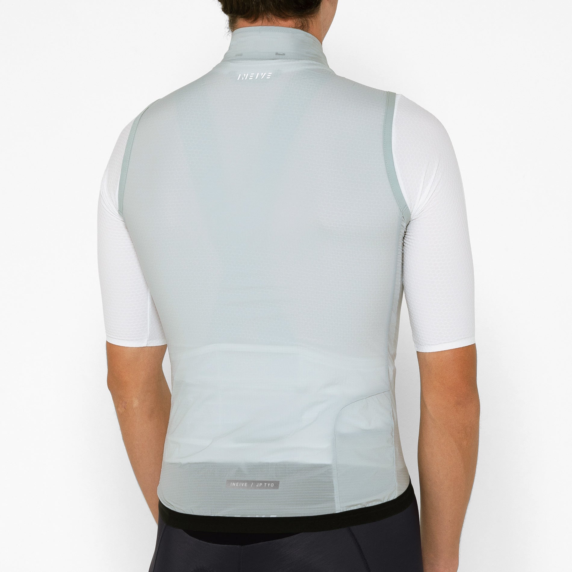 Fog Vestは2色での展開。INEIVEのラインナップでは定番のネイビーカラーは、 Root Woven Jersey や Root Bib Shorts よりも深いネイビーカラーで、スタイリングの締め色として最適。反対にフォググレーは透け感のあるライトグレーで、スタイリングに軽やかさが欲しい場合にお薦めです。